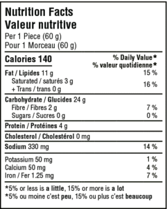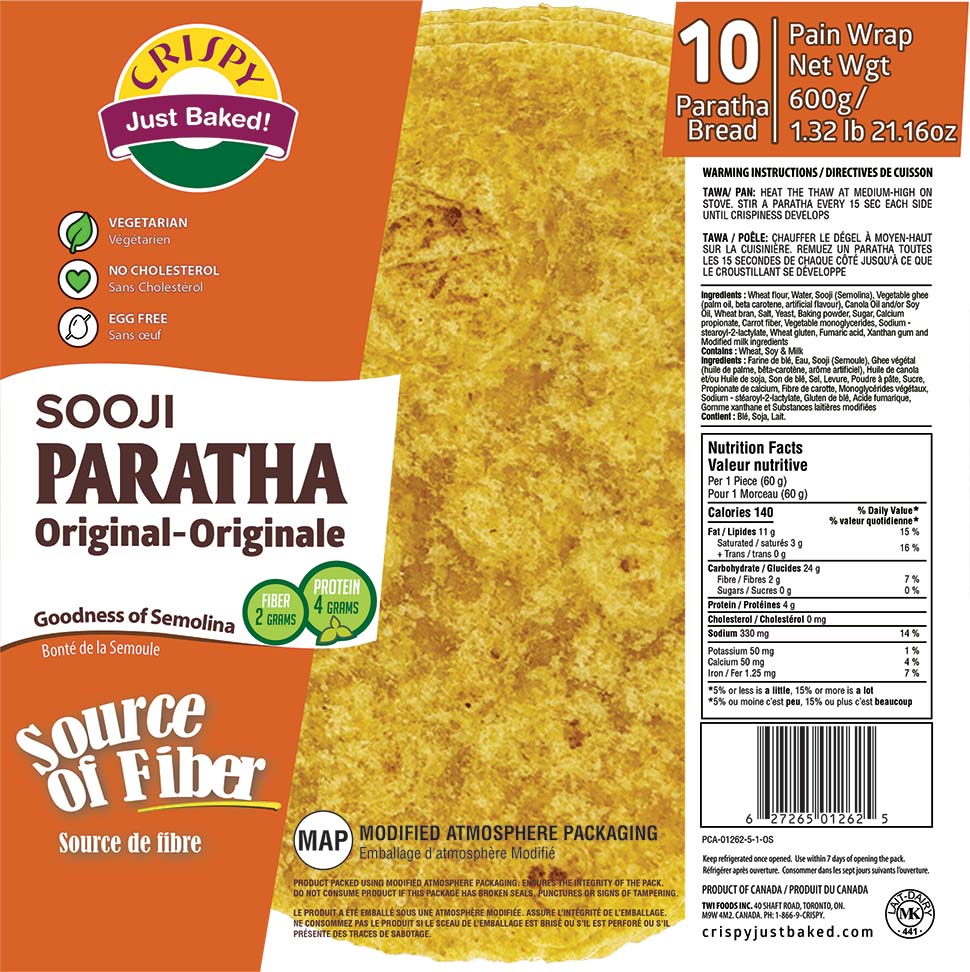 Ingredients : Wheat flour, Water, Sooji (Semolina), Vegetable ghee (palm oil, beta carotene, artificial flavour), Canola Oil and/or Soy Oil, Wheat bran, Salt, Yeast, Baking powder, Sugar, Calcium propionate, Carrot fiber, Vegetable monoglycerides, Sodium – stearoyl-2-lactylate, Wheat gluten, Fumaric acid, Xanthan gum and Modified milk ingredients